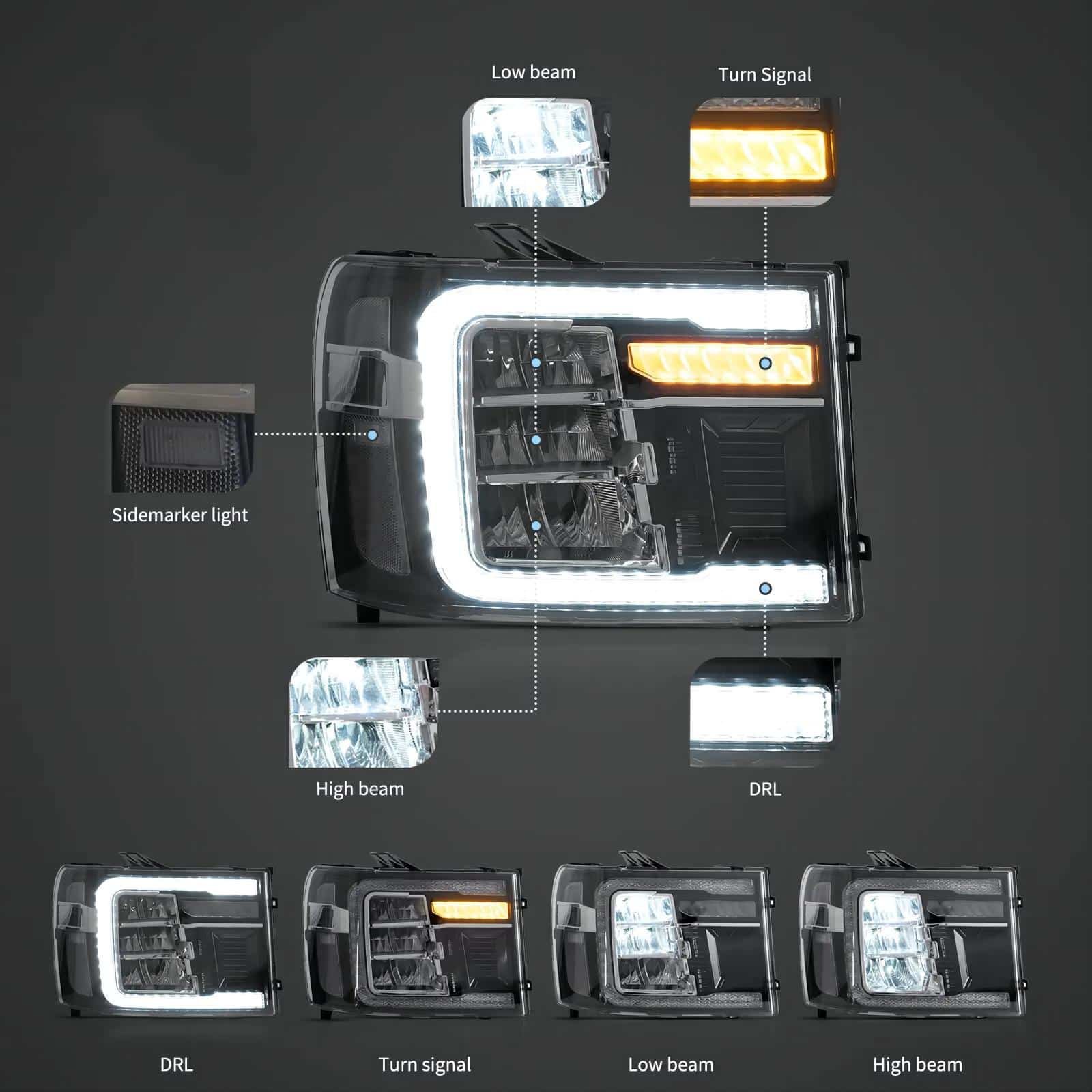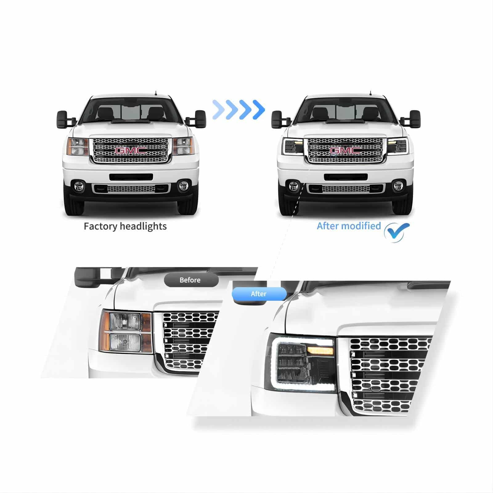 Fit For 07-13 GMC Sierra 1500 (Fits new body style only, does not fit classic body style)