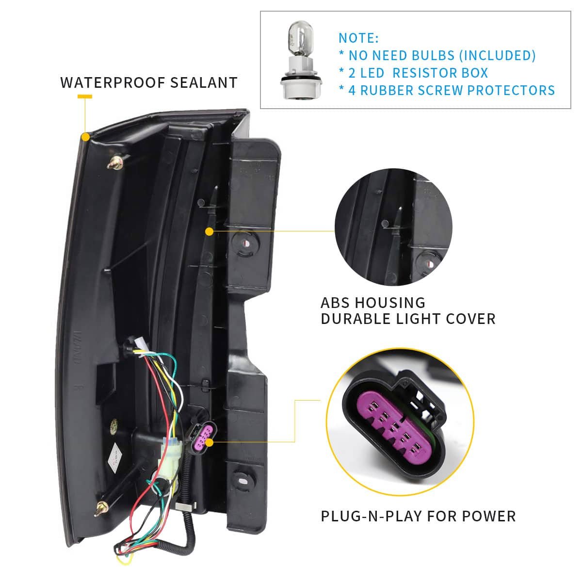 This item has the same connections and wires with the original Tail Lights. It is easy to installing (Professional installation recommended).