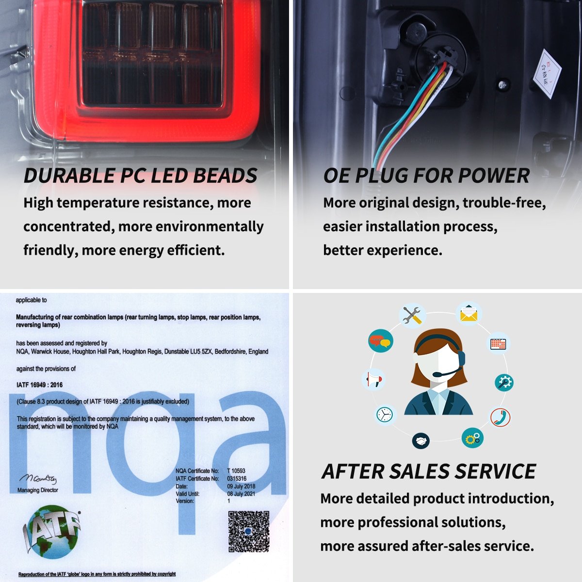 Our factory has American DOT, European E-Mark and Chinese CCC certification to assure product quality. In terms of appearance, we have the appearance and design patents of our car lights. As for production capacity, our factory has IATF 16949 auto parts production management system and ISO 9001 quality management system certification standards.