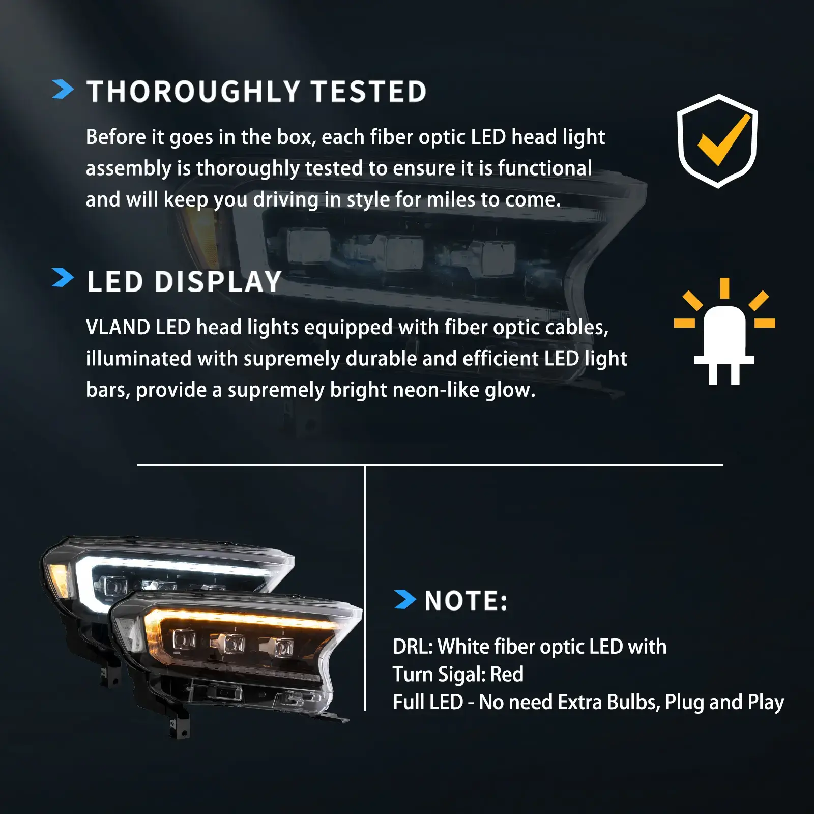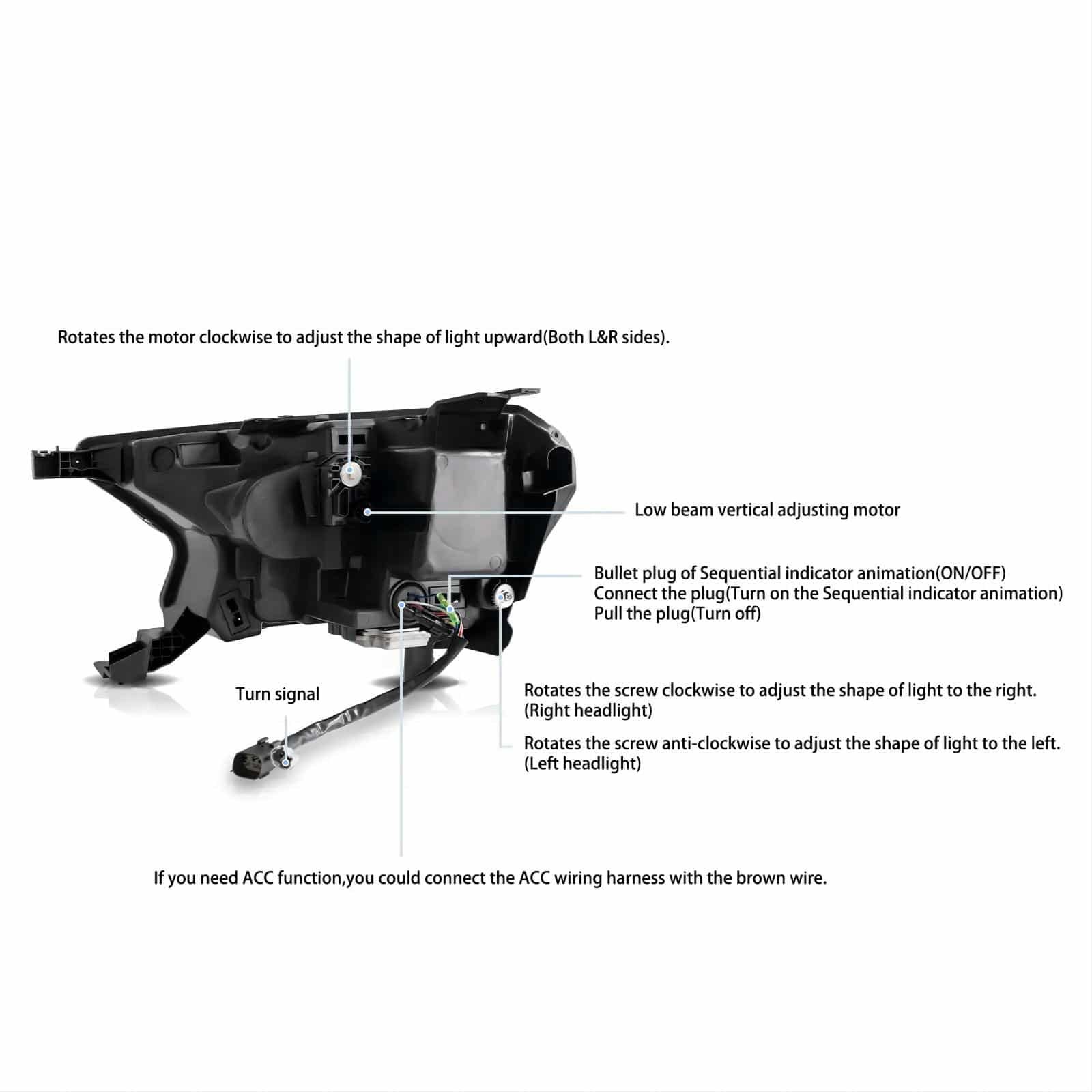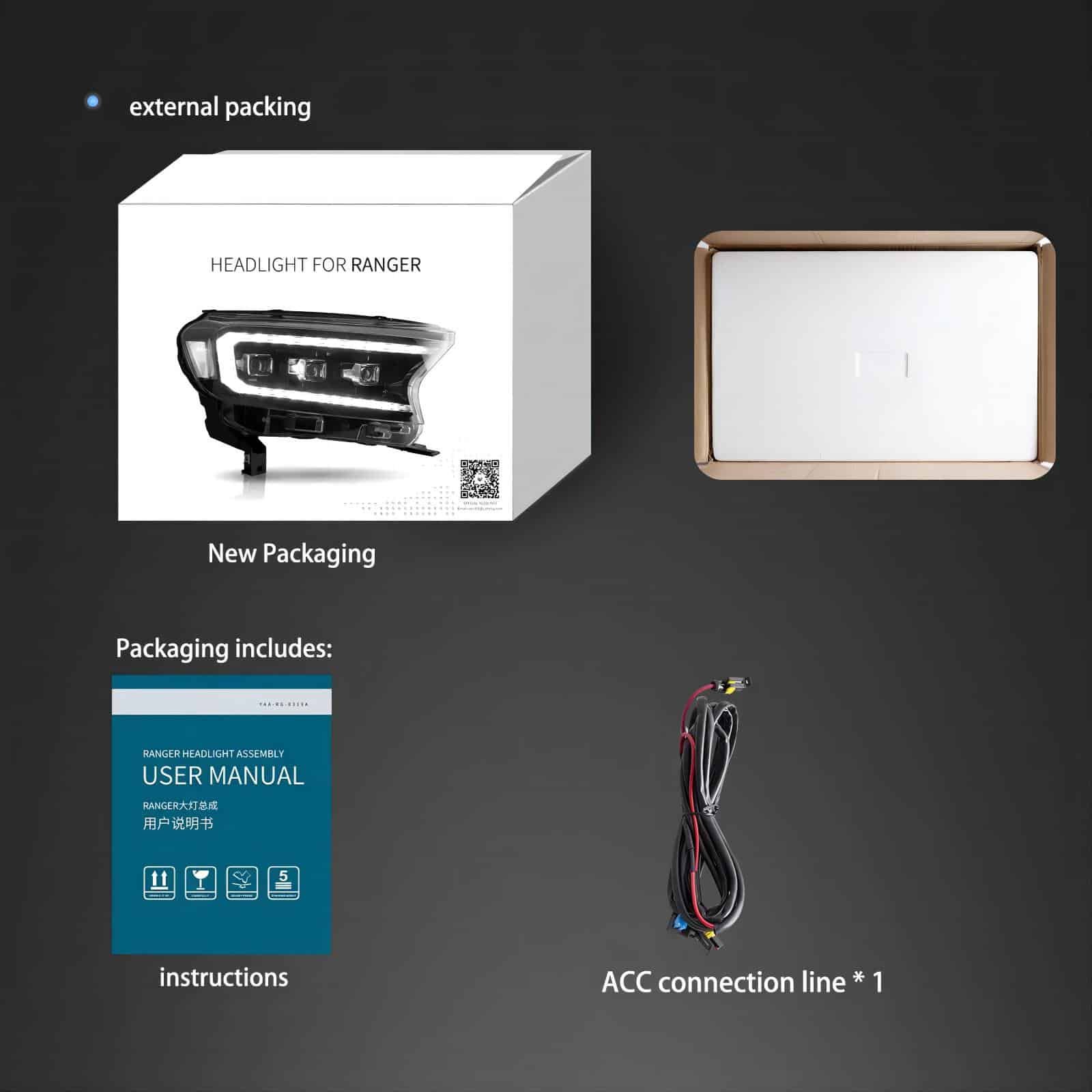 User manual*1,One pair of Headlights (include left side and right side),This item has the same connections and wires with the original headlights.