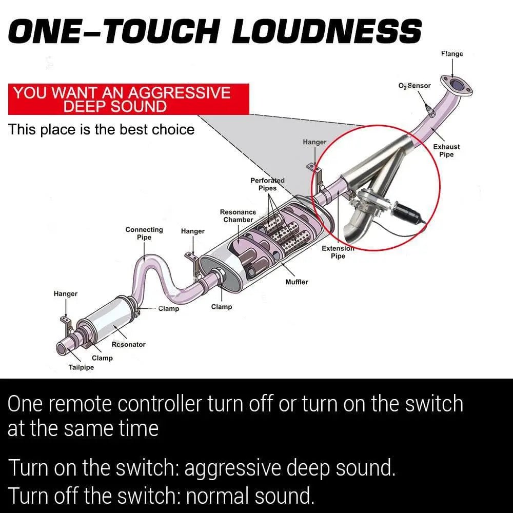This Electric Exhaust Cutout System is specifically designed and made to enhance the performance, sound, and power of vehicles with the flip of the remote switch. Instantly increases up to 20+ Horsepower. The electrical appliance allows opening the cutout simply by flipping the switch and exhaust will be opened for a more direct exhaust flow, more power, and desired loud rumble of the exhaust.