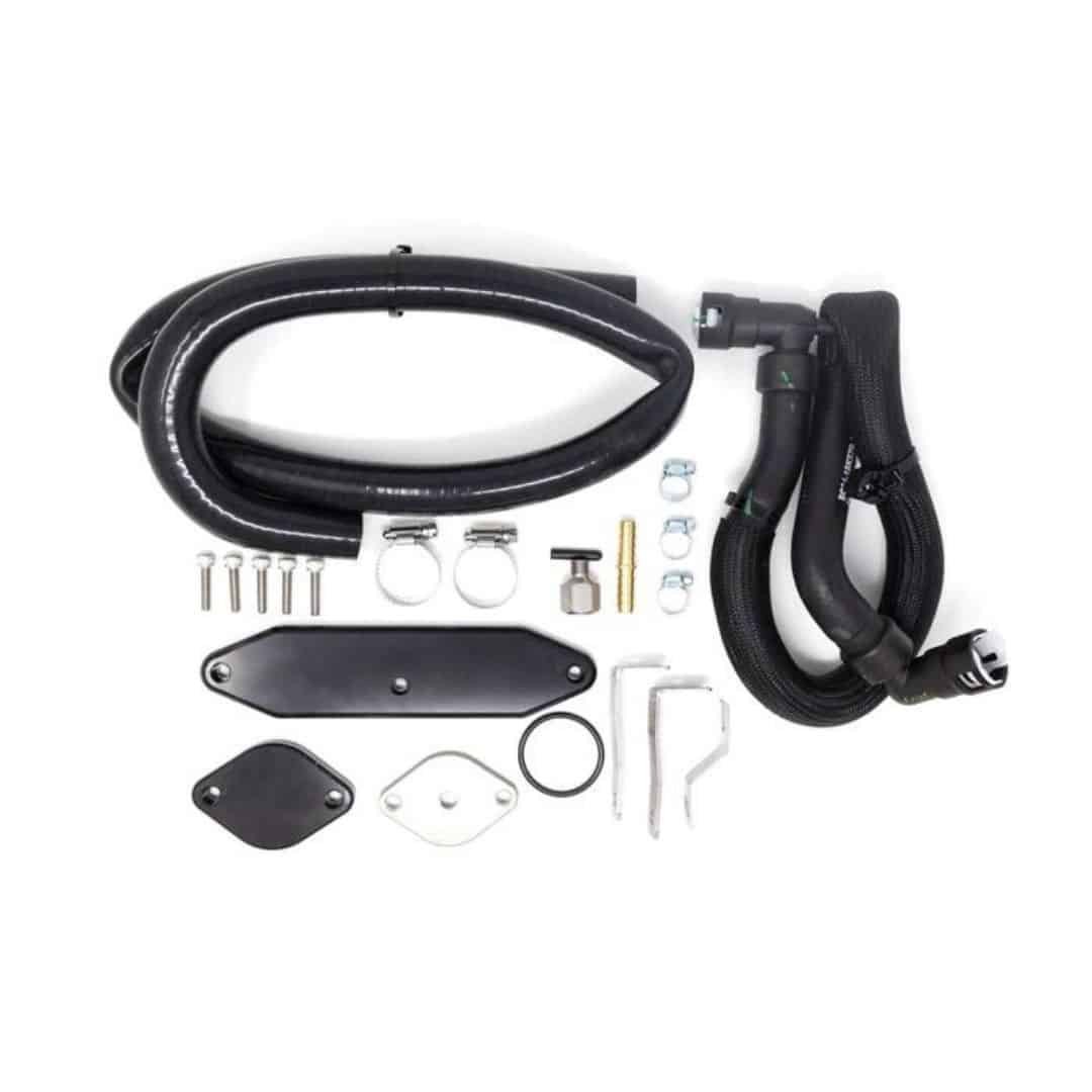This EGR delete is engineered and designed to recirculate engine coolant faster and more efficiently then the stock EGR system. High quality components consist of billet aluminum construction, nickel plated steel flanges, stainless steel dipstick tube bracket, high temp silicone hoses, zinc coated hardware & precision fit o-rings.