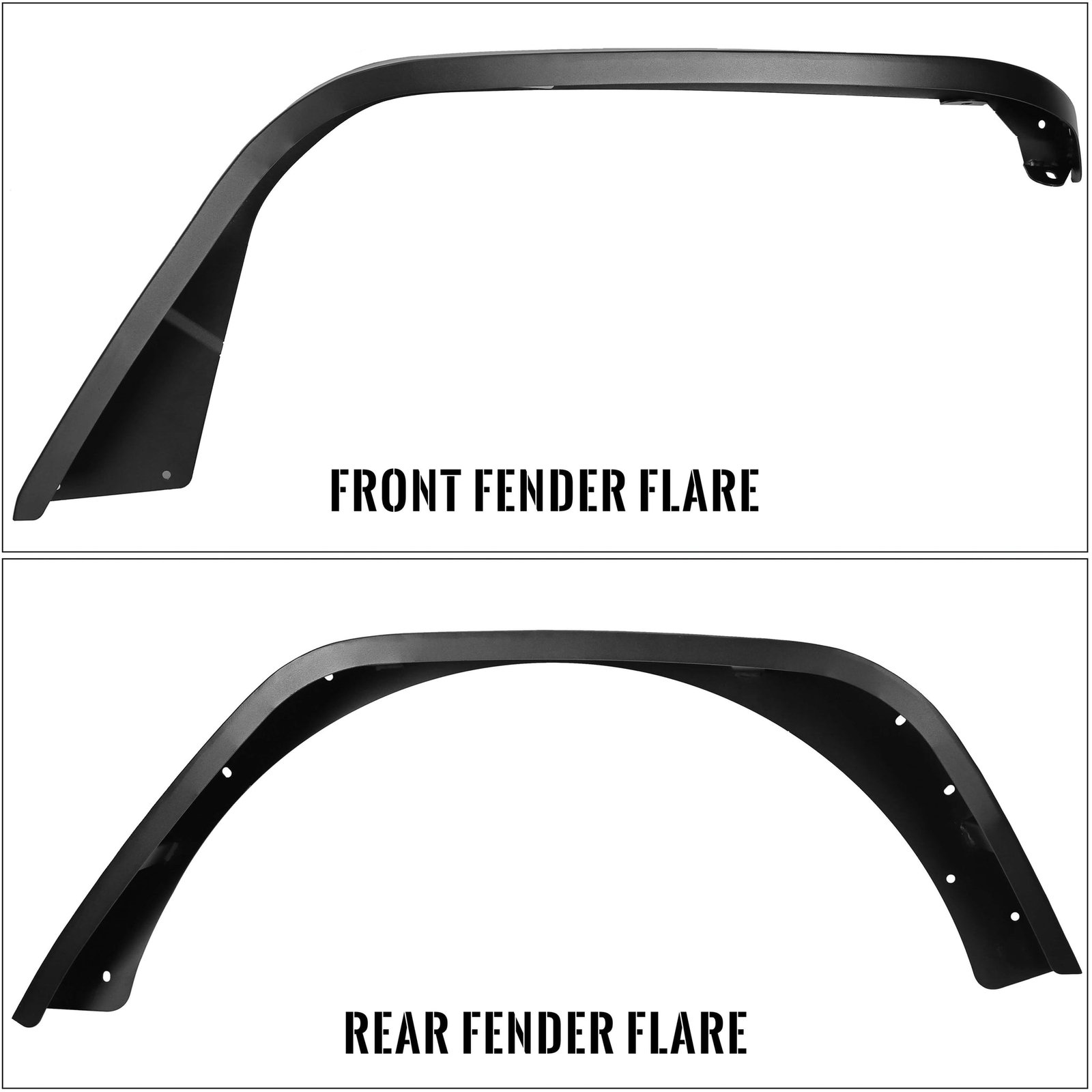 2018-2023 Jeep Wrangler JL & Wrangler JL Unlimited 2 Door & 4 Door Models 4PCS Flat Fender Flares Steel Front & Rear