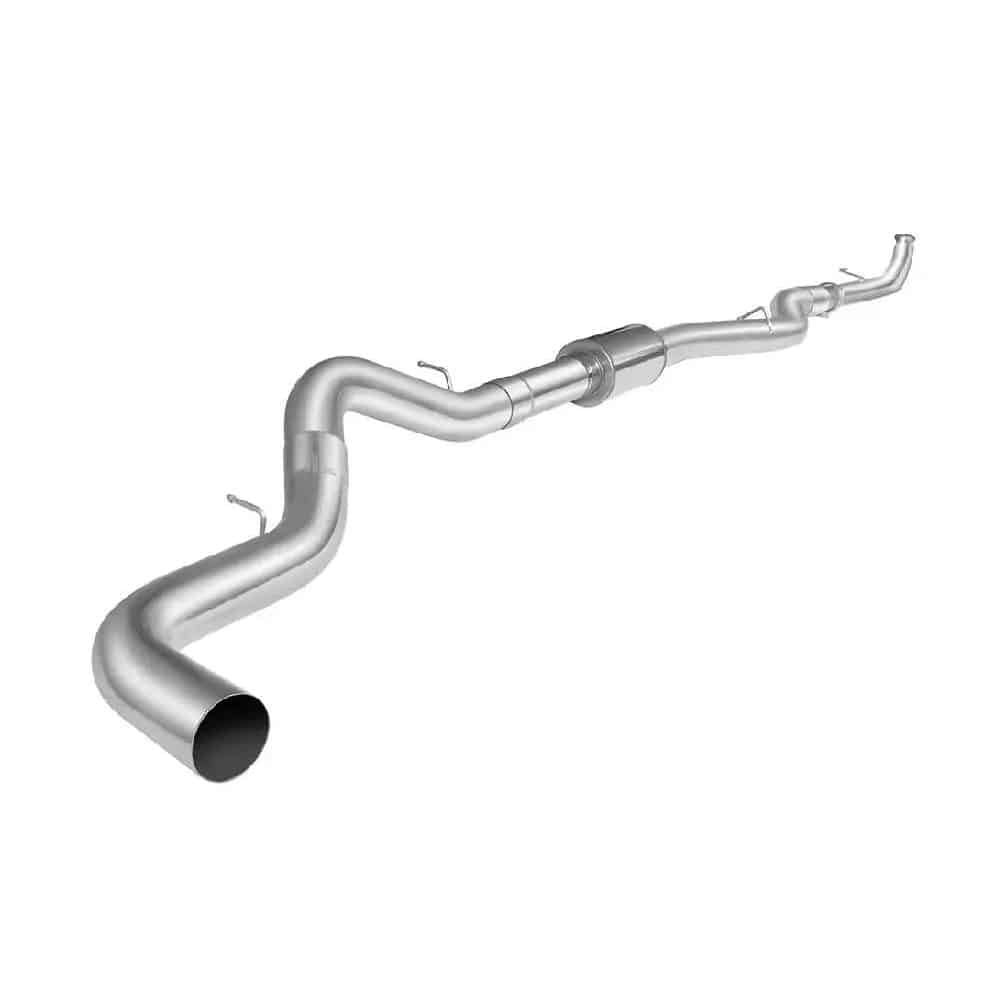 T-409 stainless steel is used for the exhaust material. It’s magnetic unlike T-304 Stainless, so a magnet will stick to it.