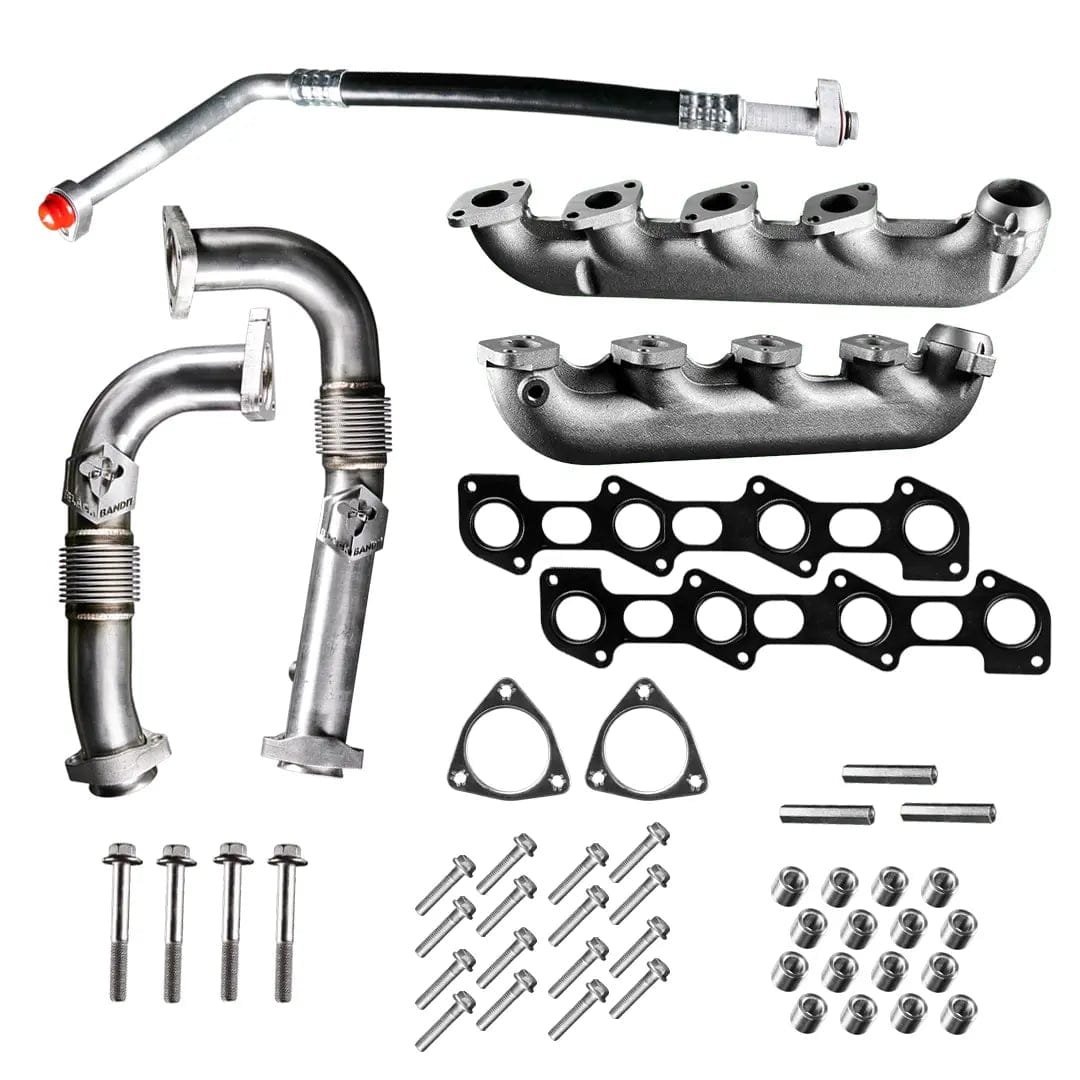 Replace your 6.4L Powerstroke’s failure-prone factory manifolds and up pipes with these heavy-duty cast manifolds and T304 Stainless Steel up-pipes and improve performance.