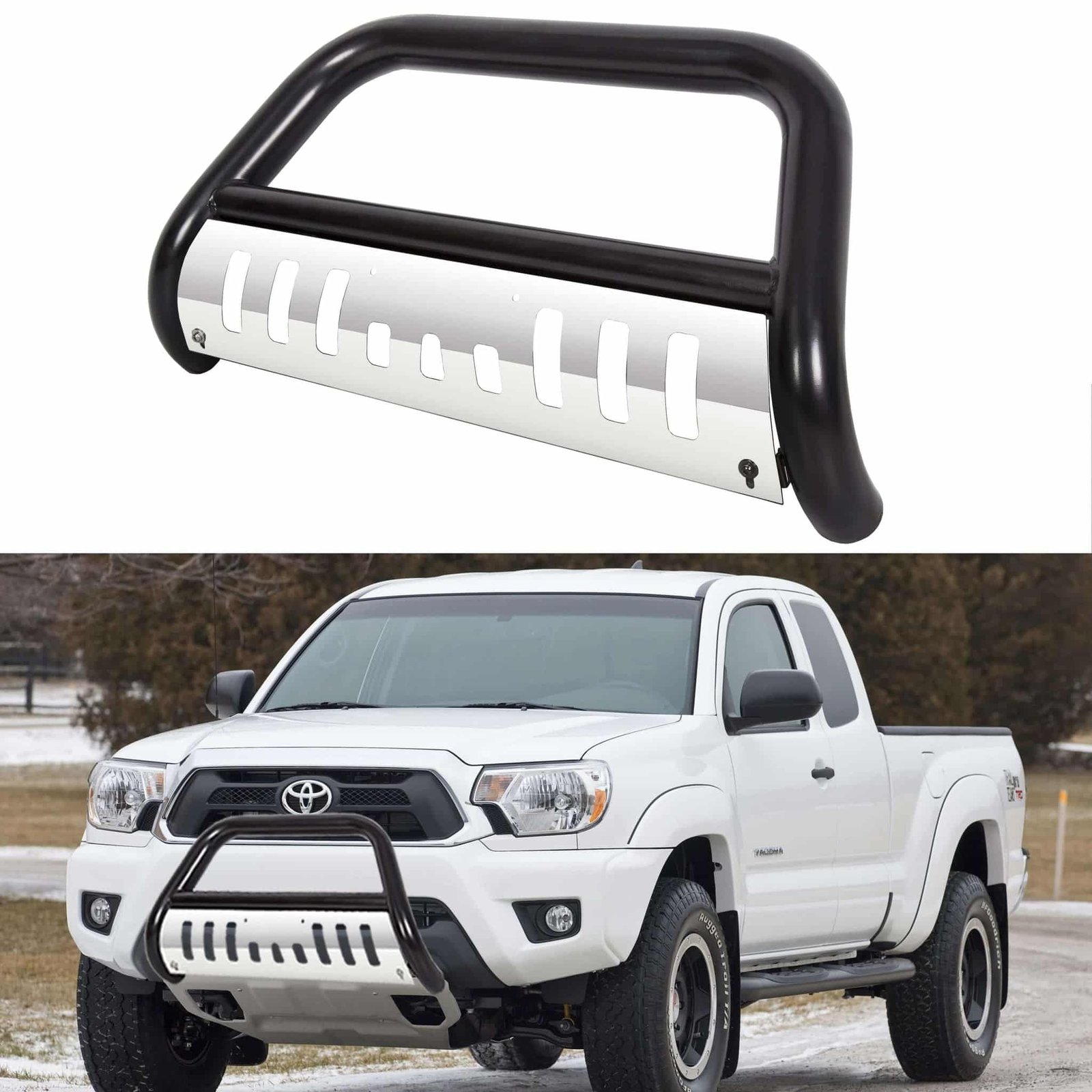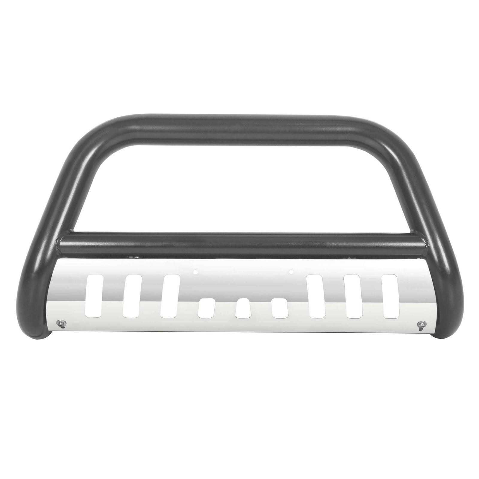 The bull bar skid plate helps deflect rocks and other small road debris. It is made from rust-resistant 304 stainless steel and has a brushed finish to hide minor scuffs and scratches.