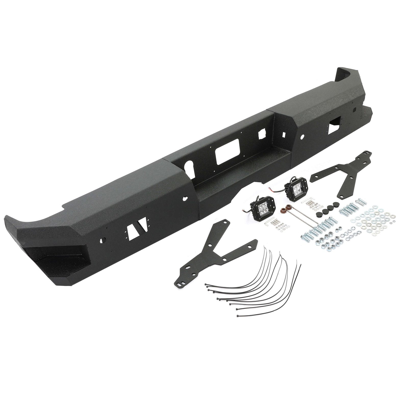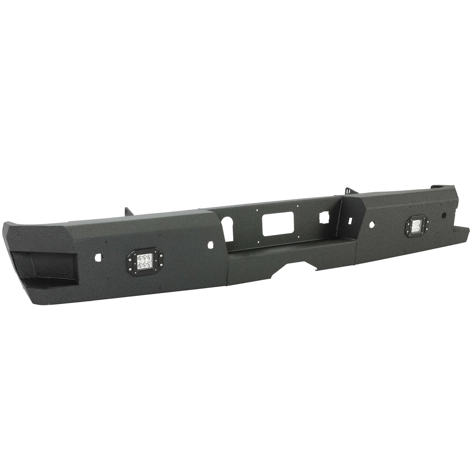 Off-Road Rear Bumper Heavy-duty Steel Compatible with 2014-2019 Chevy Silverado GMC Sierra 1500 2500 HD 3500 HD with 2 LED